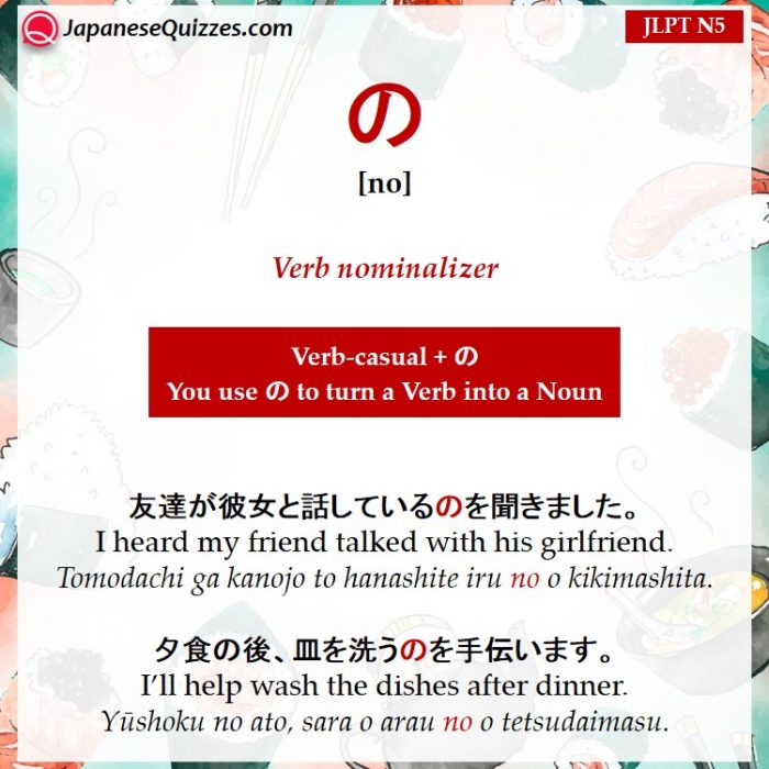 You use の to turn a Verb into a Noun.